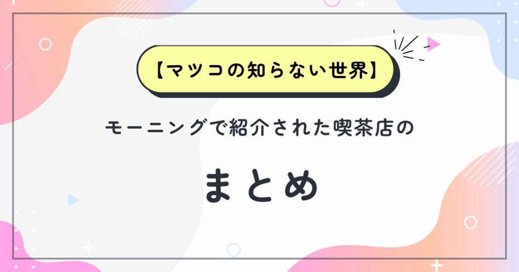 【マツコの知らない世界】モーニングで紹介された喫茶店まとめ
